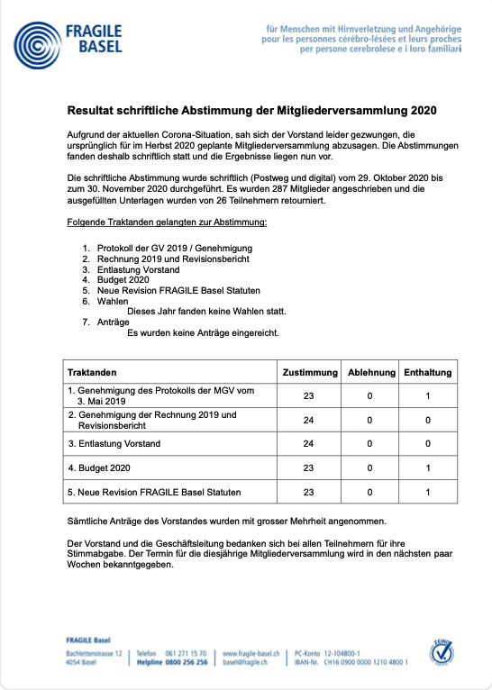 Hier erhalten Sie einen Überblick über die Resultate der Abstimmung MGV 2020 (Protokoll)